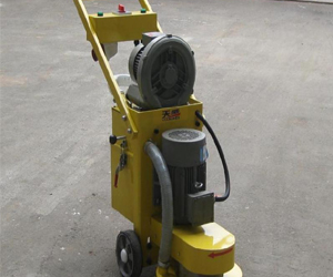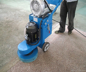 在打磨硬质地面时,先在地面上洒适量混凝土粉末,开启机器几秒吗,用粉末黑给金刚石刀头开刃,使其更锋利。