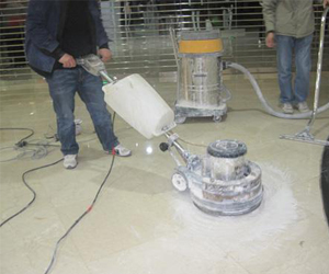 在打磨硬度极高的混凝土时,可以先将地板打湿,增加摩擦,从而降低金刚石工具的钝化效果。打磨时,确保大于30-40%的磨盘刀头面积在被打磨的混凝土表面工作,可保证高效打磨以及防止刮擦。