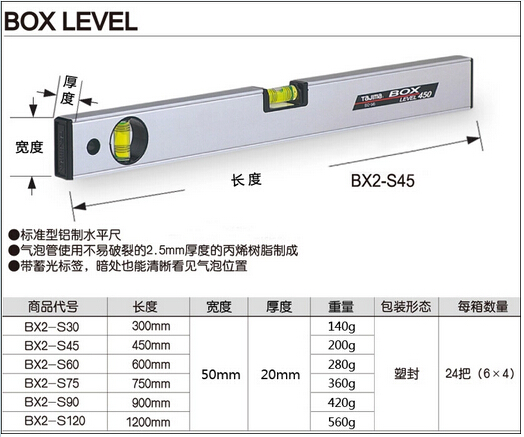 1.标准型铝制水平尺.