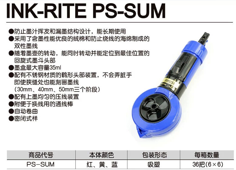 5.配有不绣钢材质的鹤形头部装置,不会弄脏手即使狭缝处也能刻画墨线(30mm,40mm,50mm三个阶段).