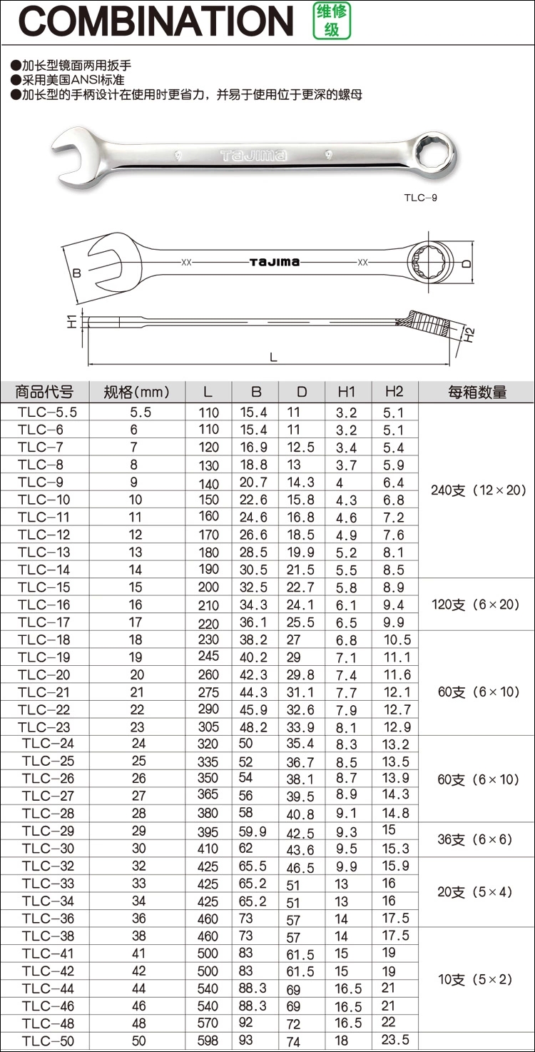 1.加长型镜面两用扳手.