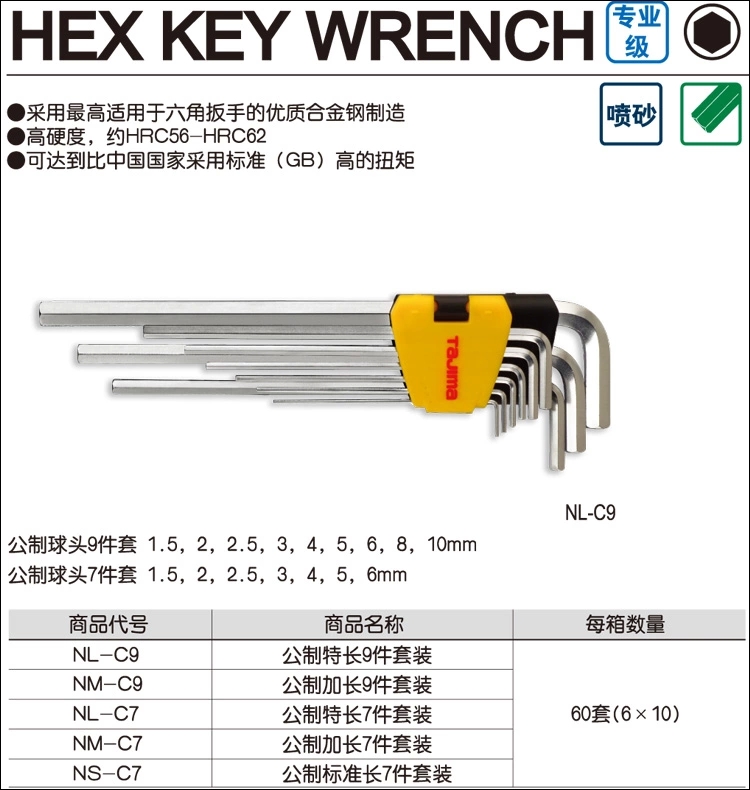 1.采用最高适用于六角扳手的优质合金钢制造.
