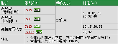 使用压力(bar) : 1.8-7, 温度范围(℃) : 10-60, 执行形式 : 双作用, 磁性 : 有