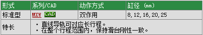 进出口尺寸 : M5x0.8, 使用压力(bar) : 1.5-7, 温度范围(℃) : -10-60, 执行形式 : 双作用, 磁性 : 有
