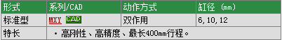 缸径(mm) : 8, 行程(mm) : 150, 总长度(mm) : 98+行程, 进出口尺寸 : M5x0.8, 使用压力(bar) : 2-5.5, 温度范围(℃) : -10-60, 执行形式 : 双作用, 磁性 : 有