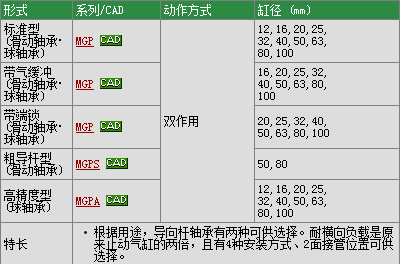 温度范围(℃) : -10-60, 执行形式 : 双作用, 磁性 : 有